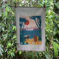 Inspired by early 20th century Australian travel posters, 'Darwin' features an assemblage of iconic Northern Territory imagery. Travel posters from this interwar period, often appealing to the beauty of the Australian wilderness, were a huge promoter of the Australian travel industry. I love the graphic style and the distillation of elements in these posters. 'Darwin' is my tip of the hat to these works.